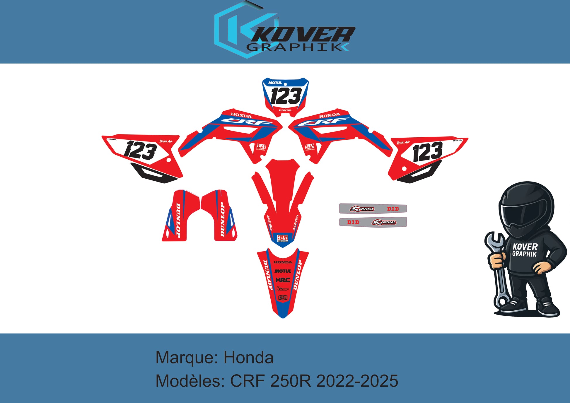 Kit déco Honda CRF 250R 2022-2025 – Design Factory HRC Rouge / Bleu | Kover Graphik
