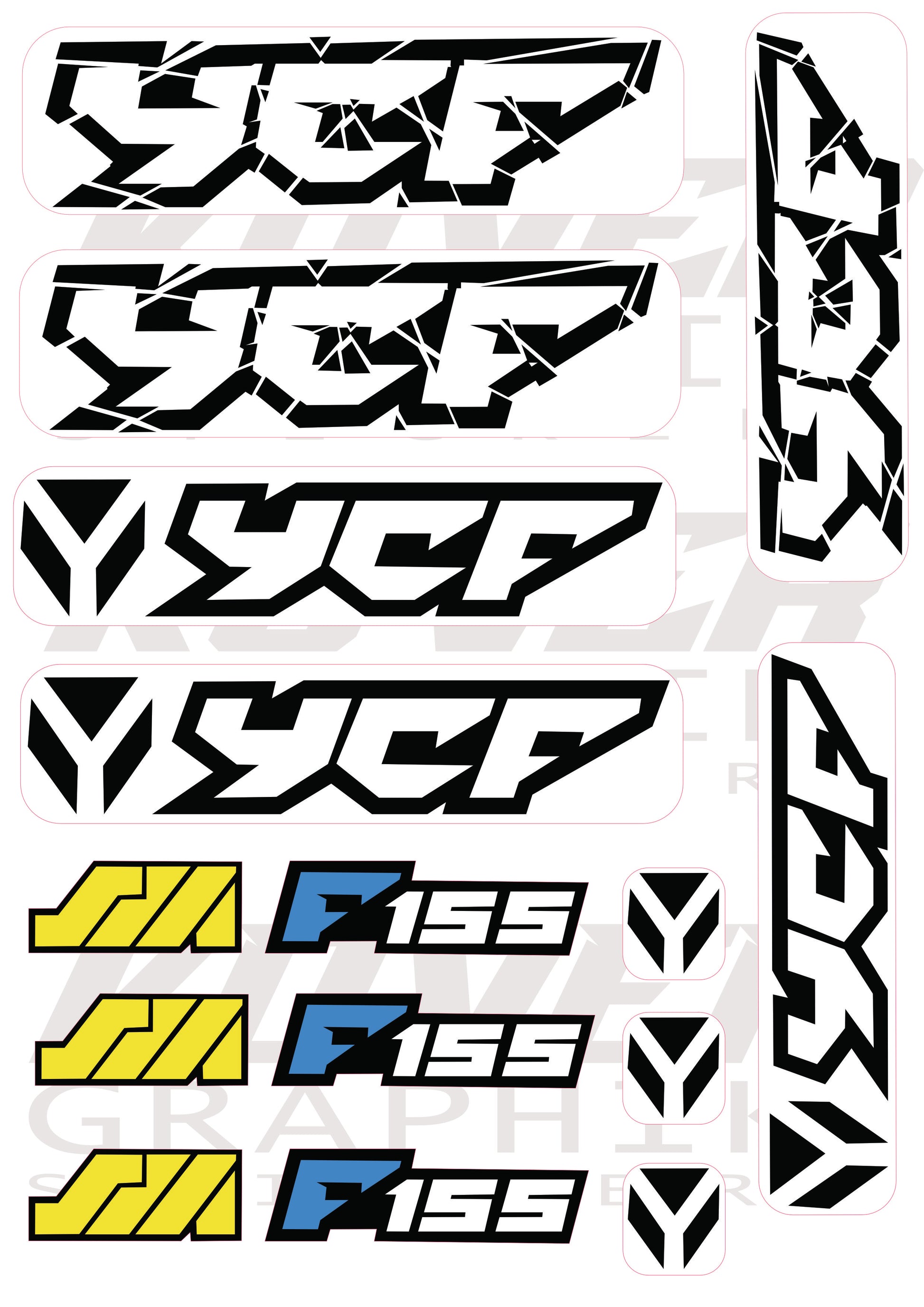 Kit Stickers YCF SM F155 – Design Noir, Blanc, Jaune & Bleu | Kover Graphik