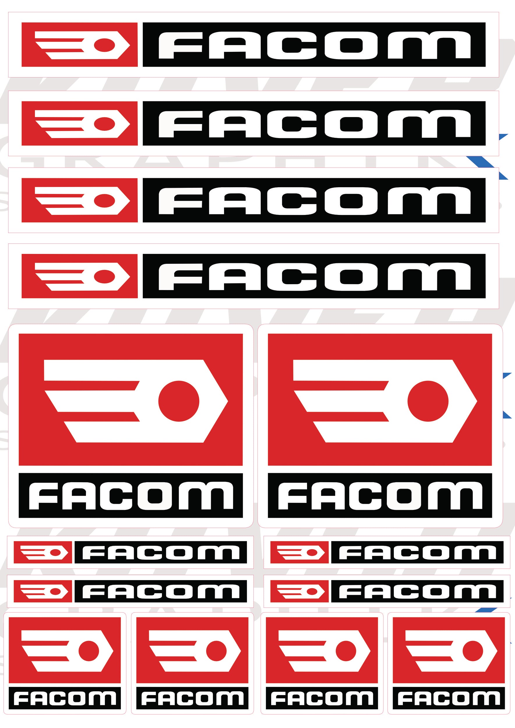 Stickers compatibles Facom – Planche d’Autocollants Vinyle Outils & Garage Professionnel